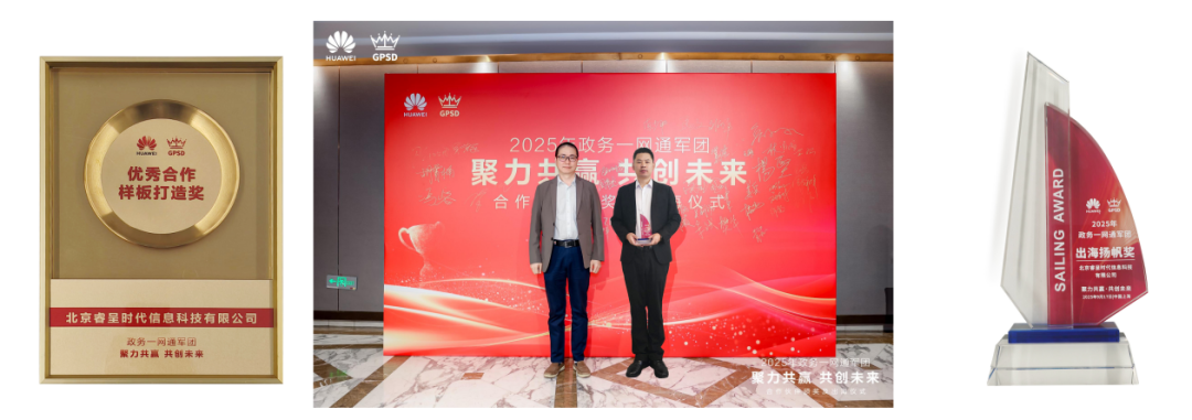 9月17日,2025年政務(wù)一網(wǎng)通軍團(tuán)“聚力共贏、共創(chuàng)未來(lái)”合作伙伴頒獎(jiǎng)及出海儀式中,睿呈榮獲了“優(yōu)秀合作樣板打造獎(jiǎng)”和“出海揚(yáng)帆獎(jiǎng)”雙獎(jiǎng)項(xiàng)。